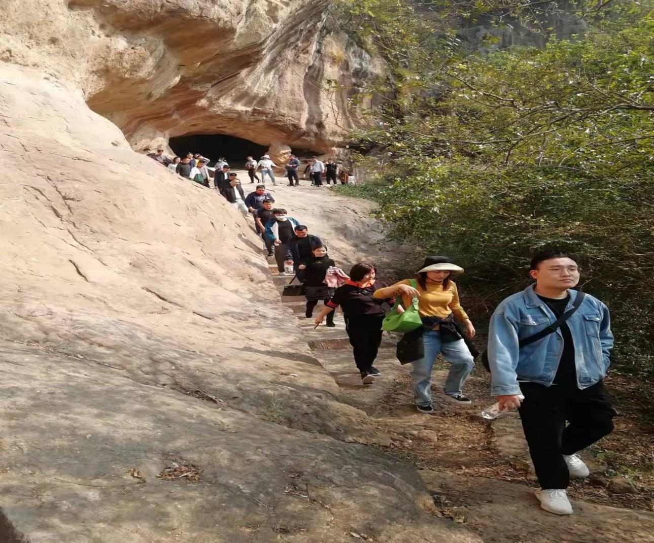 活動中,在講解員的講解下,大家詳細了解了浮山的整體概況和人文歷史。在主景區,瀏覽了藏在山里的洞——馬蹄洞、摩崖石刻群、雷公洞、亞洲第一橋——仙人橋等景點。在登山過程中,大家一邊聽著講解員的介紹;一邊欣賞著浮山美景,仿佛步入了人間仙境,十分悠然自得。