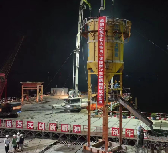 8月10日凌晨5時(shí),經(jīng)過數(shù)個(gè)日夜的連續(xù)澆筑,G3銅陵長(zhǎng)江公鐵大橋3號(hào)主墩鋼圍堰水下封底順利完成,標(biāo)志著大橋北岸主墩即將進(jìn)入承臺(tái)施工階段,為后續(xù)塔柱及上部結(jié)構(gòu)施工奠定了堅(jiān)實(shí)的基礎(chǔ)。