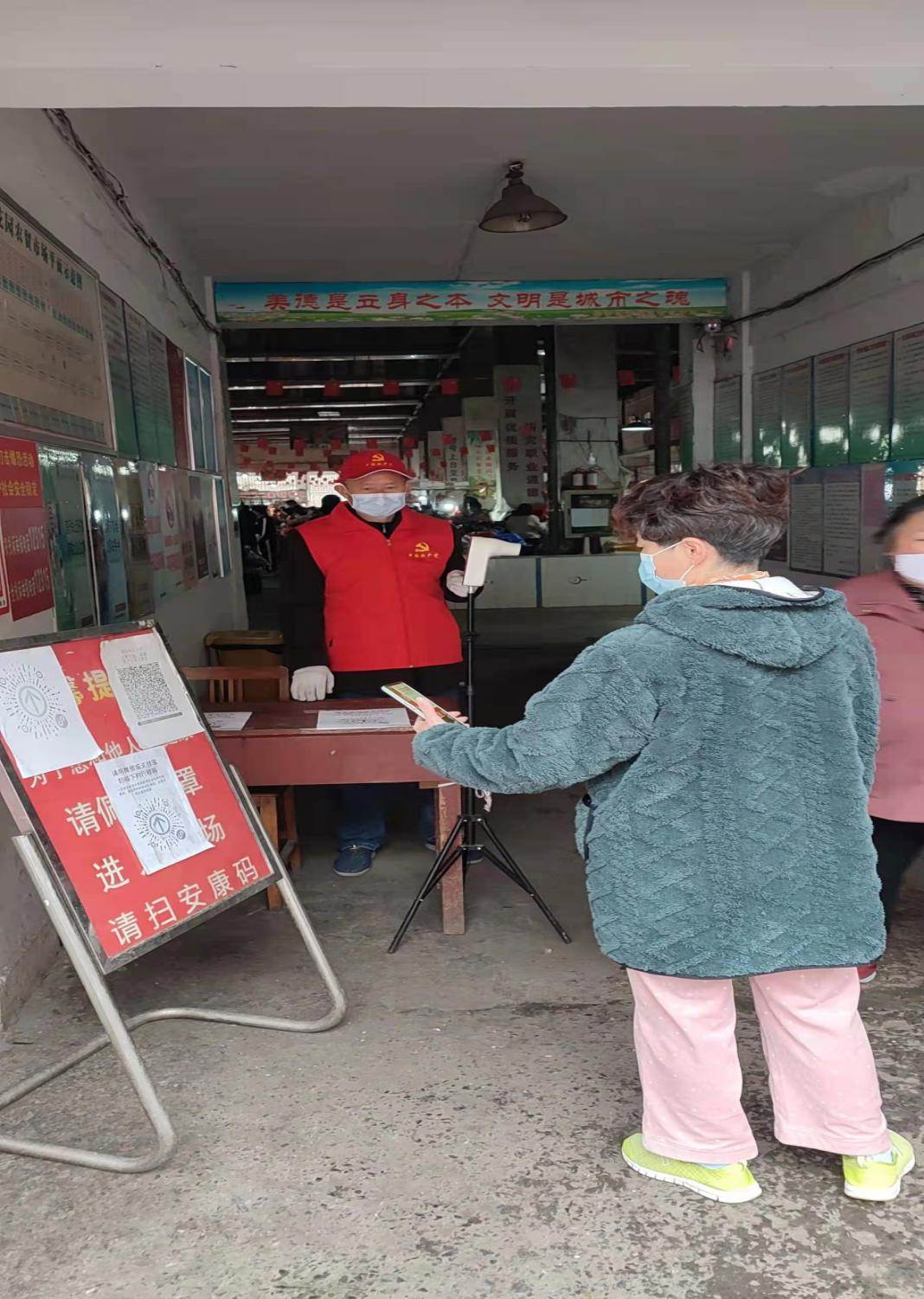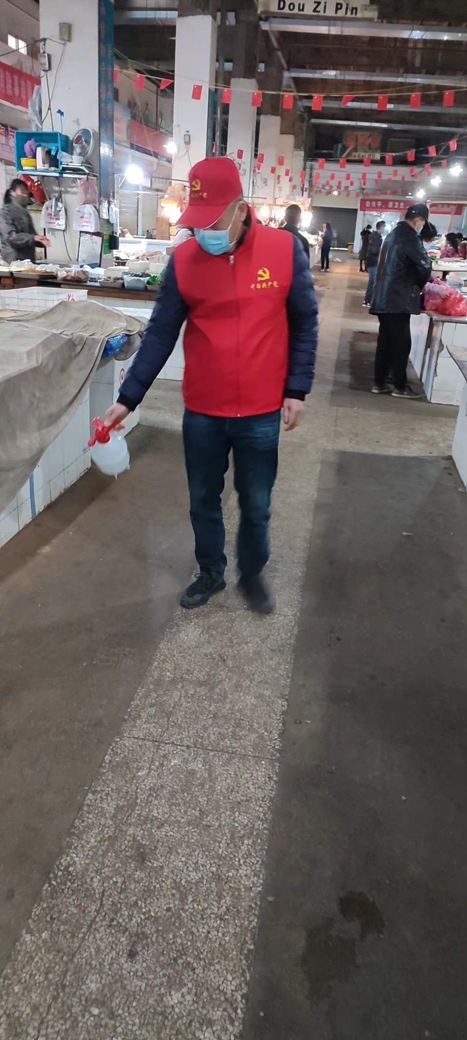疫情就是命令,防控就是責任。交投汽運公司二級機構誠信物業黨支部充分發揮基層戰斗堡壘作用,組織全體黨員克服交通管控、天氣嚴寒等困難因素,積極投入到市場疫情防控工作第一線,嚴格落實疫情防控相關規定,在世界花園農貿市場設立專用通道和人員專崗,合理分工,做到進入市場所有人員應檢盡檢、不漏一人。