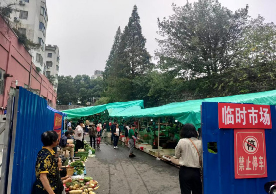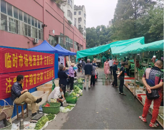 新的臨時農(nóng)貿(mào)市場位于原市場后門處,面積約為900平方米,容納了市場有愿意遷出的50戶固定經(jīng)營戶,設(shè)有蔬菜、水產(chǎn)、肉類、干貨、豆制品、凍貨等數(shù)十個區(qū)塊,還設(shè)有自產(chǎn)自銷區(qū),將在接下來兩個多月市場改造期間,有效解決周邊群眾菜籃子問題。