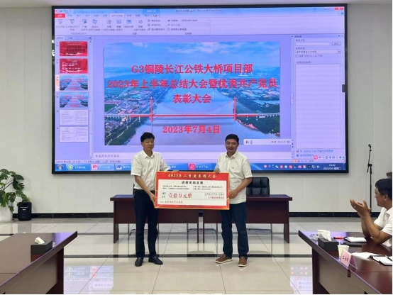 7月4日下午,G3銅陵長江公鐵大橋項目2023年上半年總結(jié)暨優(yōu)秀共產(chǎn)黨員表彰大會召開。集團公司黨委委員、副總經(jīng)理、銅陵長江公鐵大橋投資有限公司執(zhí)行董事總經(jīng)理湯世才出席會議。中鐵大橋局四分公司黨委書記、執(zhí)行董事王立忠,各參建單位負責人及相關(guān)人員參加會議。