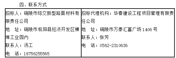 6、本次招標公告同時在銅陵市綜合交通投資集團有限公司(http://www.dvqu.cn/)、安徽省招標投標信息網(http://www.ahtba.org.cn/)發布。
