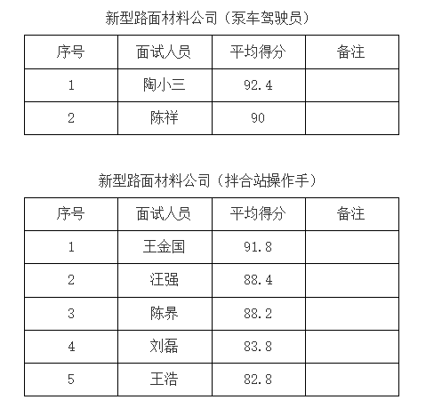 根據(jù)《銅陵市綜交新型路面材料有限責(zé)任公司公開(kāi)招聘人員公告》,我公司已于2021年9月5日開(kāi)展銅陵市綜交新型路面材料有限責(zé)任公司相關(guān)崗位面試工作,現(xiàn)將面試成績(jī)公示如下: