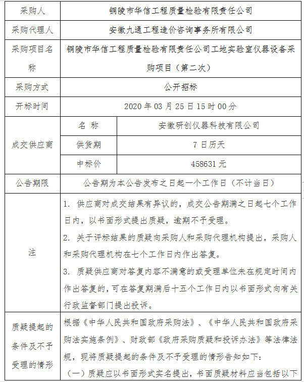 采購人:銅陵市華信工程質(zhì)量檢驗有限責任公司